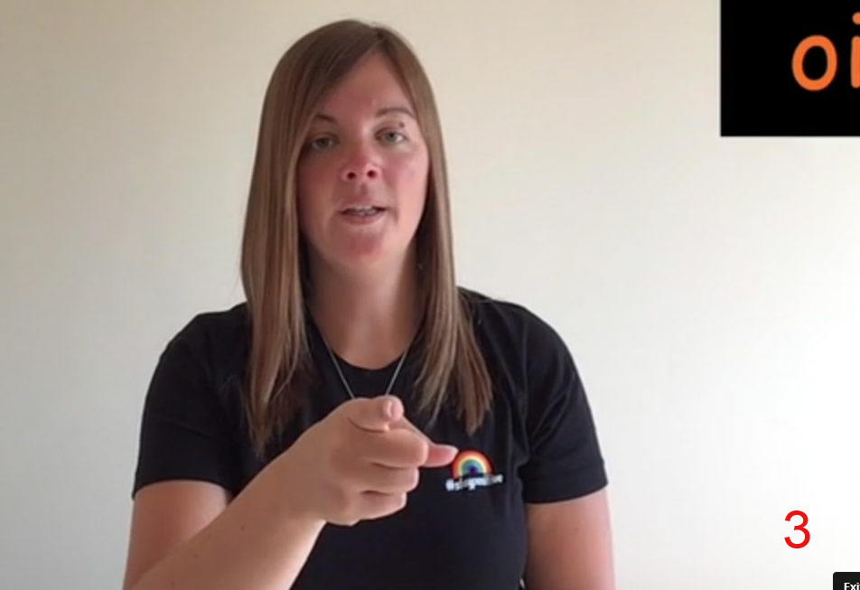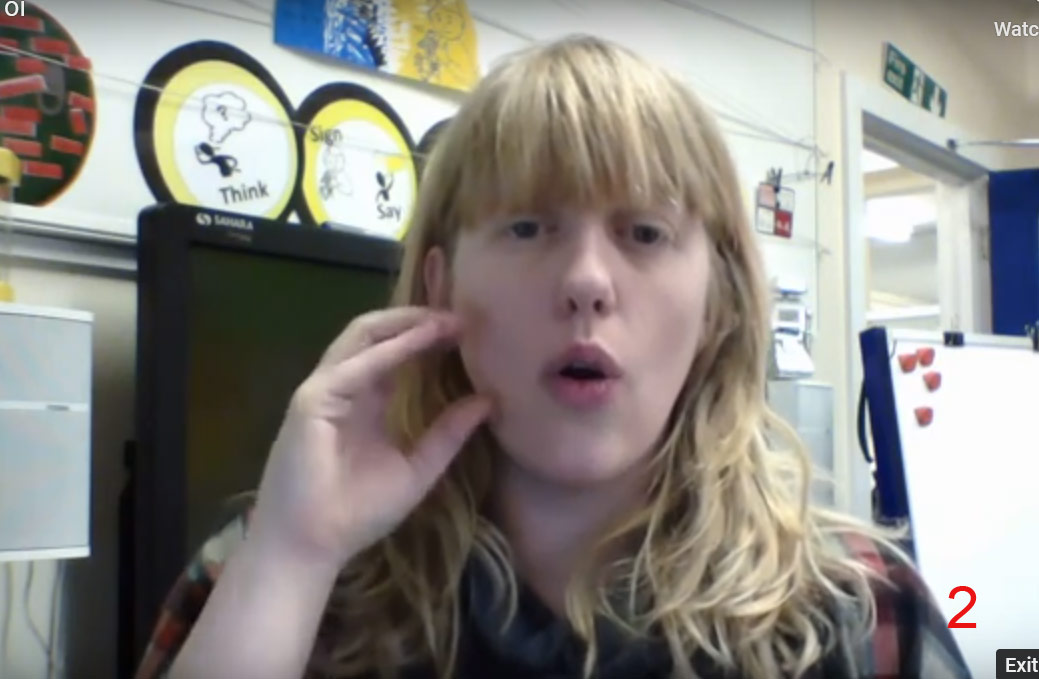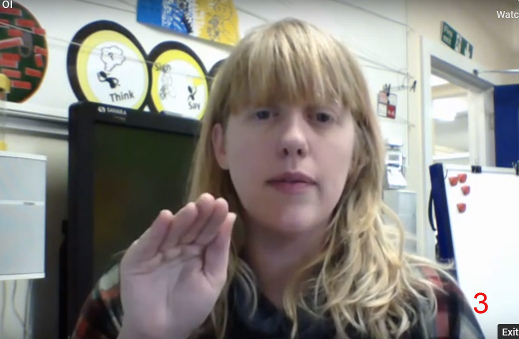 Put your thumb and fingers together to make a rounded hand shape. Quickly open your hand, keeping the fingers together and extending the thumb.