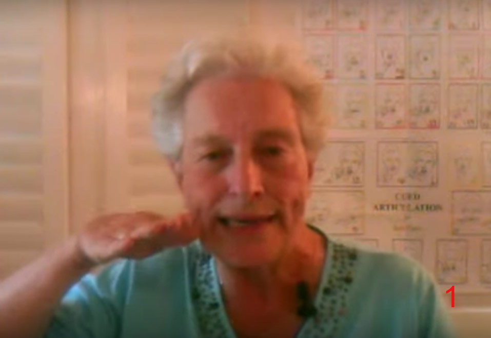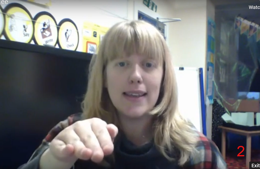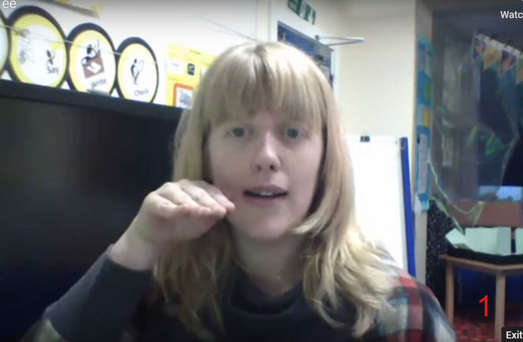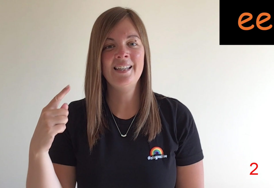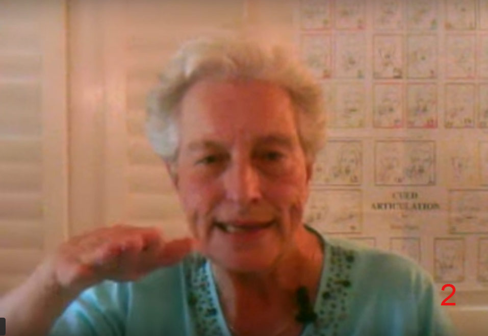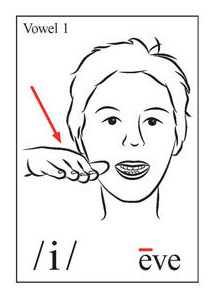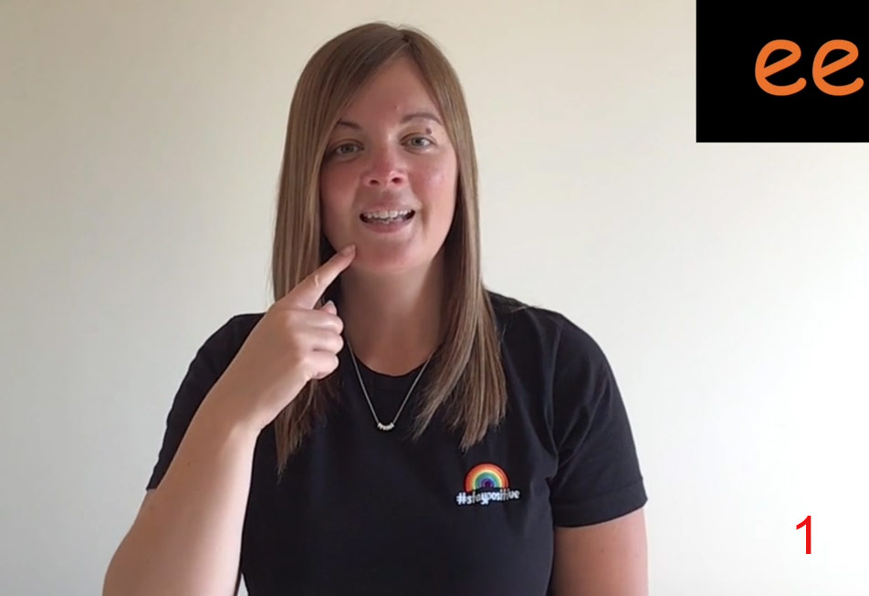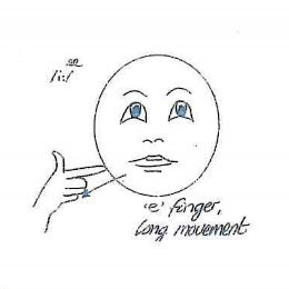 Hold your fingers bent with your thumb underneath. Move your hand forward out from your mouth.