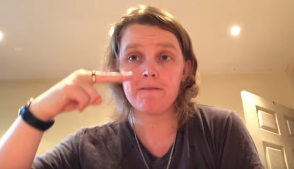 Put your fingers and thumb together, palm facing your mouth. Flick your fingers upward off your thumb (blowing the four fingers back).