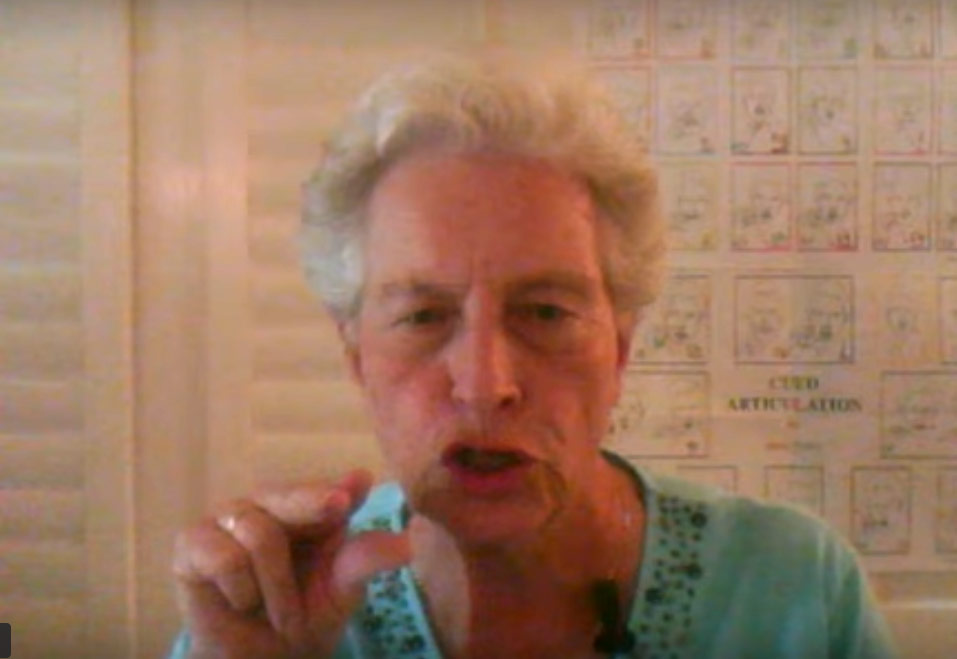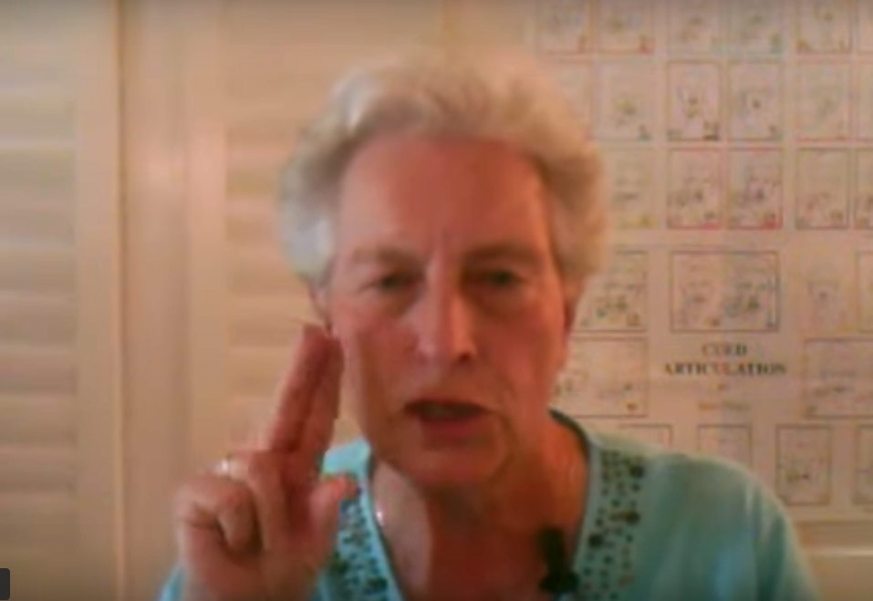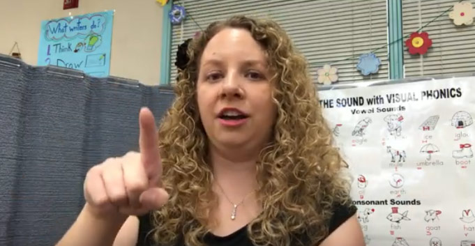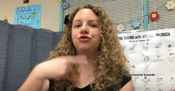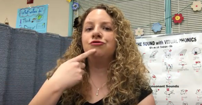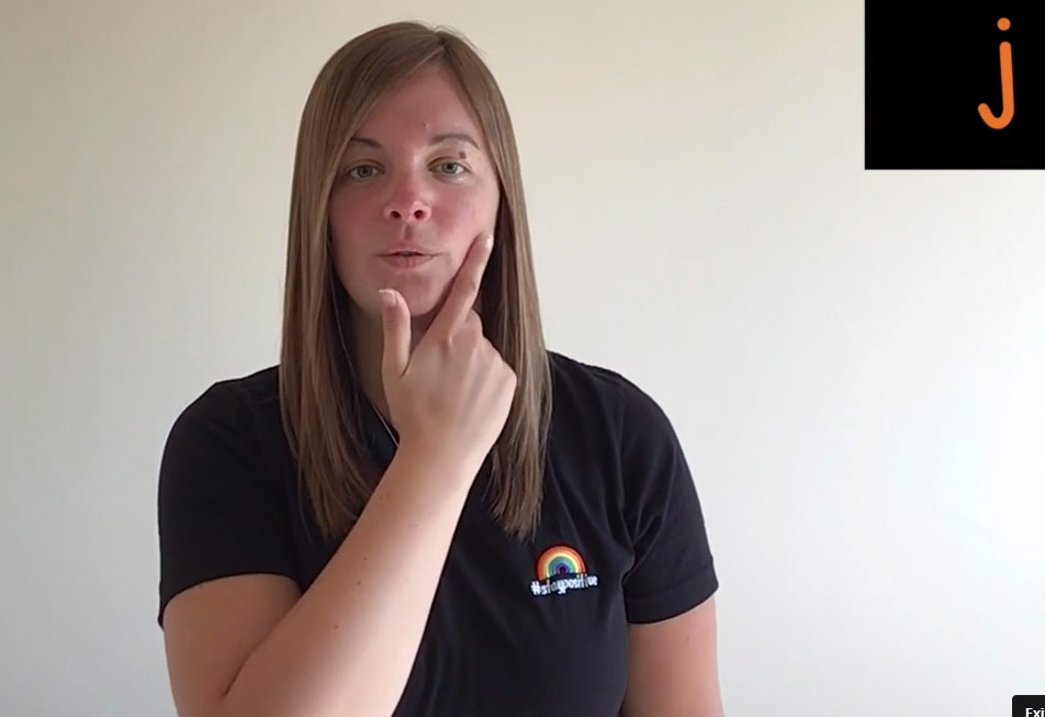 Draw the symbol with your index finger by moving away from your mouth. (“jumping out”)
