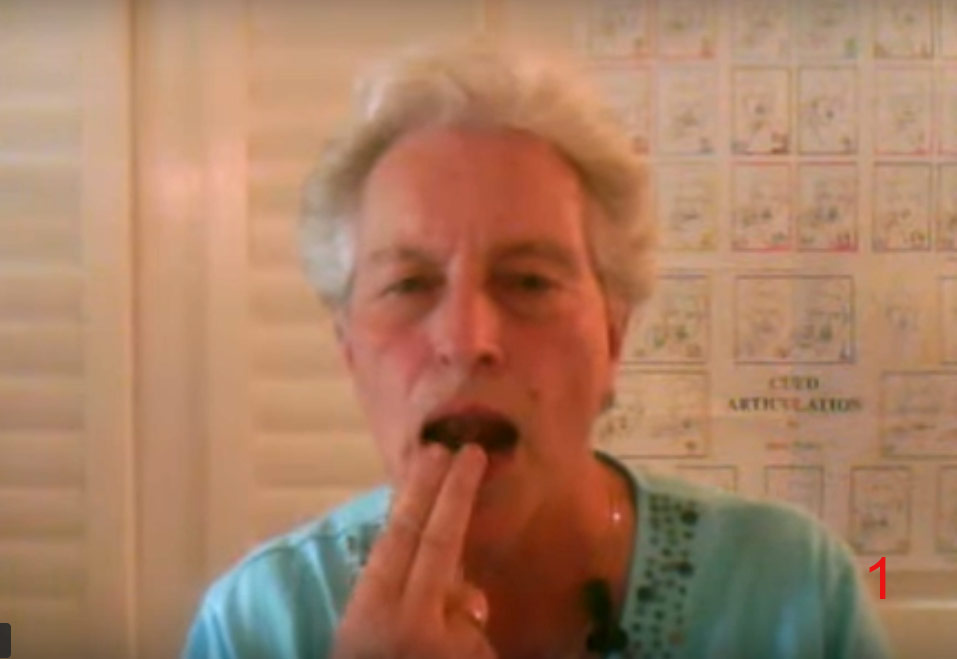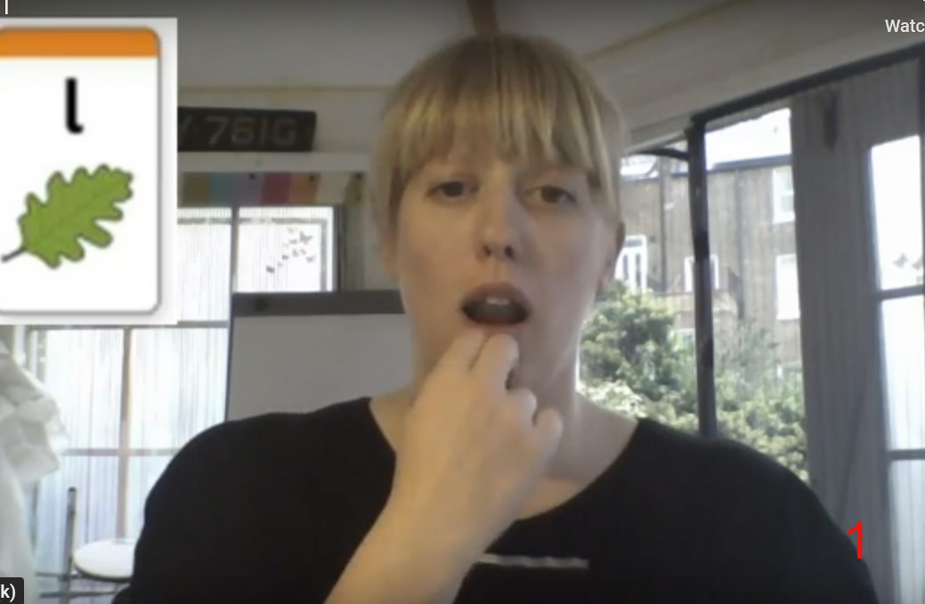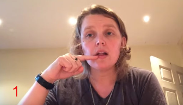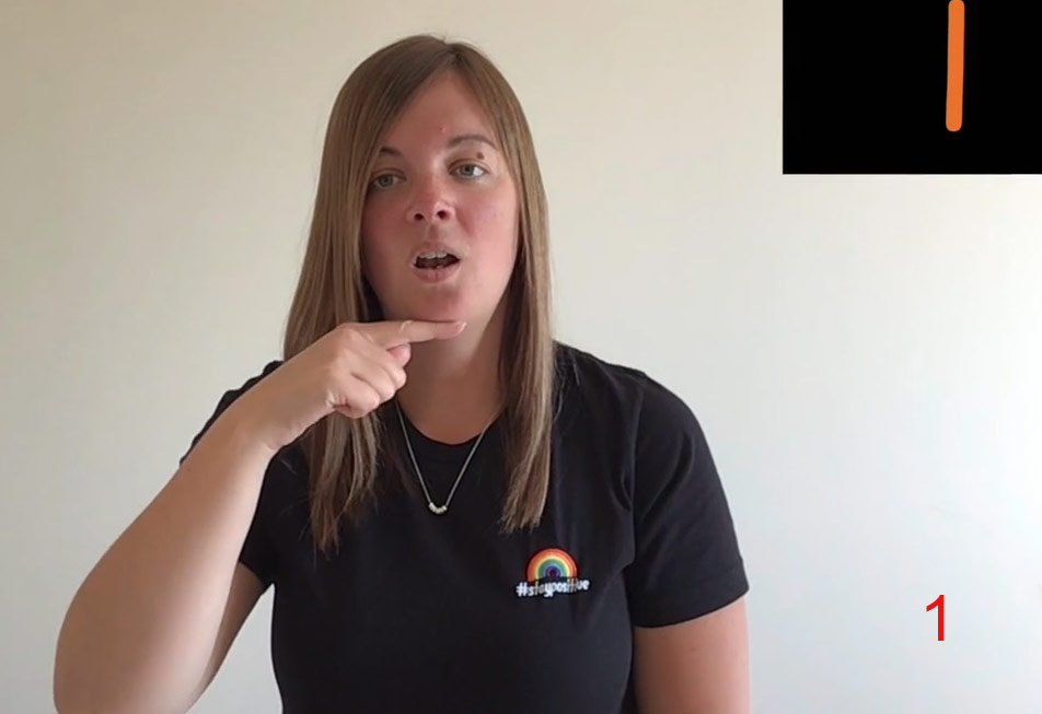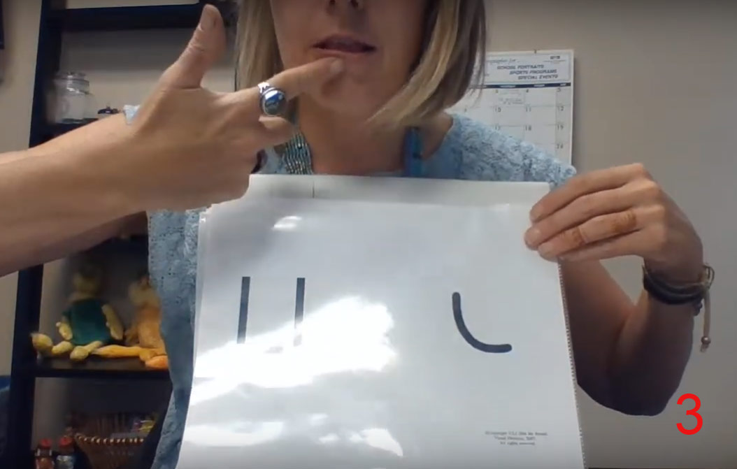 Draw the symbol with your index finger (thumb extended), moving upward toward your mouth.