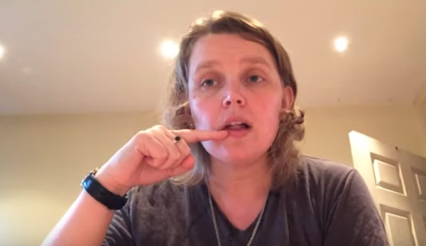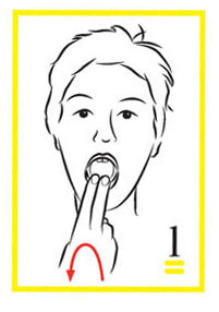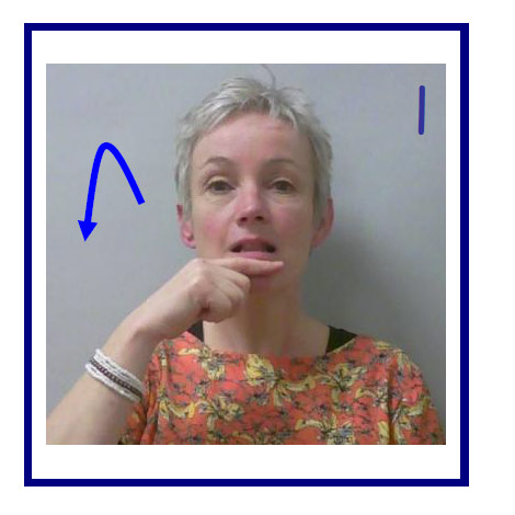 Draw the symbol with your index finger (thumb extended), moving upward toward your mouth.