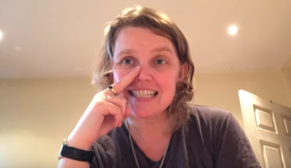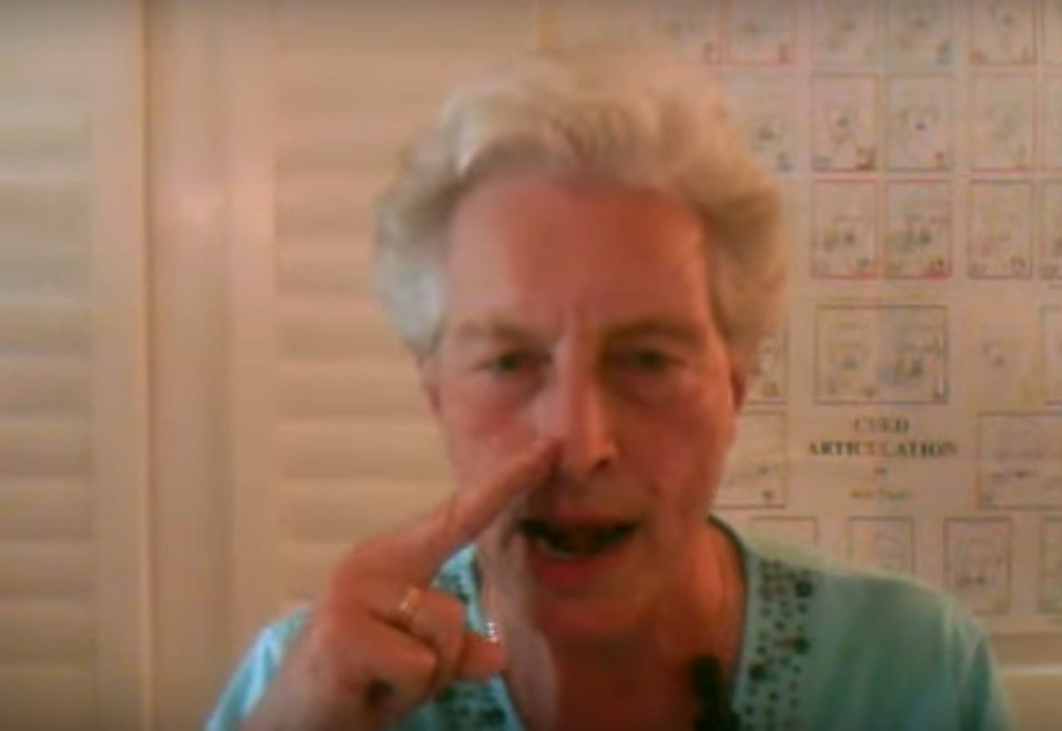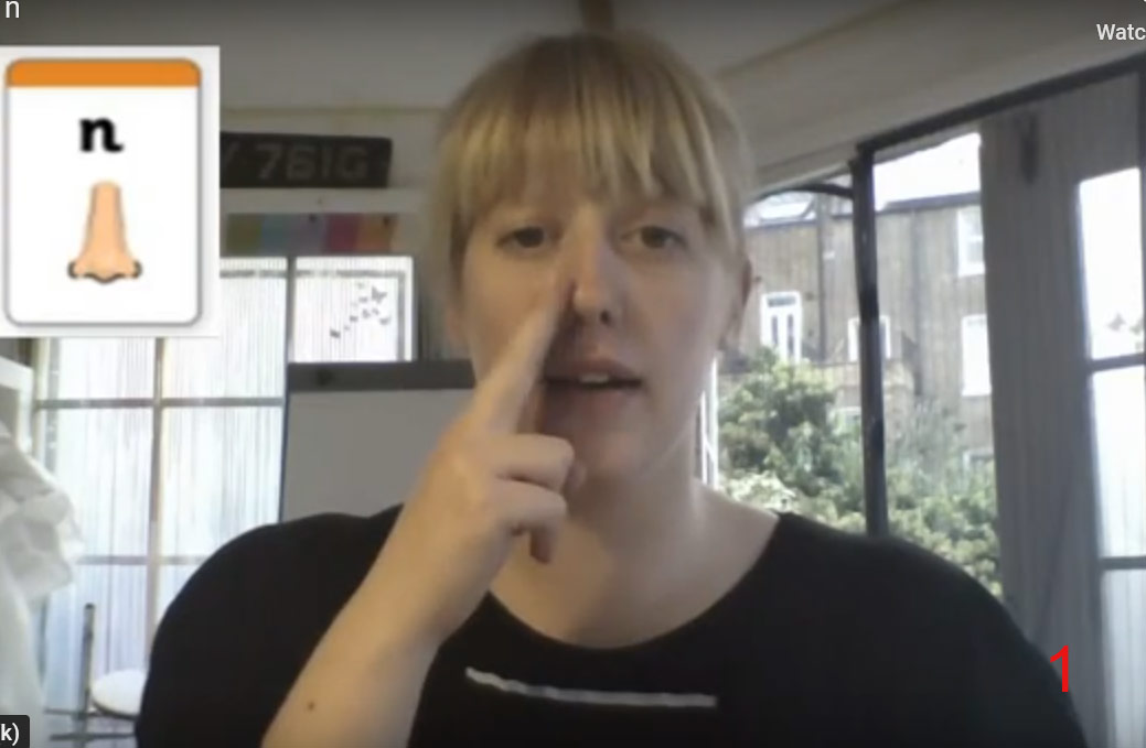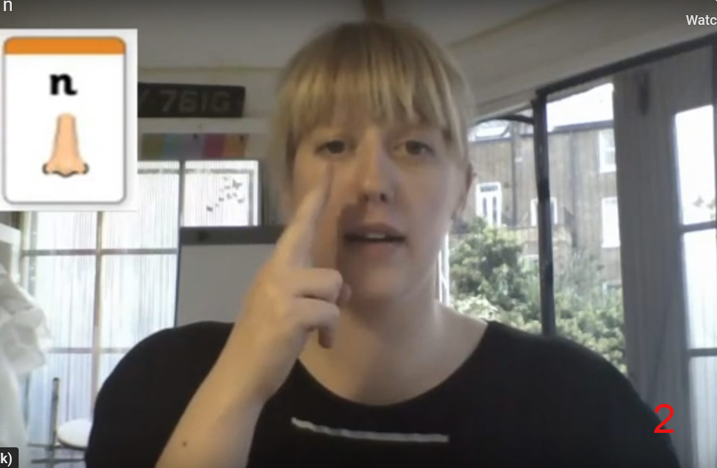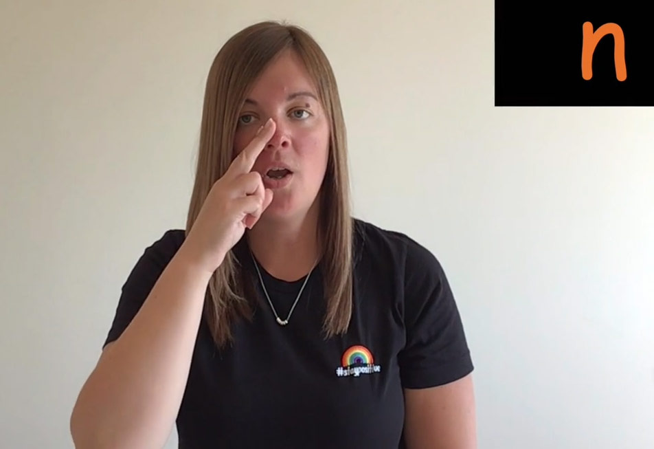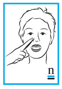 Draw the symbol in the air with your index finger, moving away from your mouth.