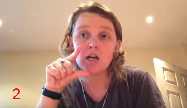 Put your thumb and fingers together, by the corner of your mouth (palm facing forward).