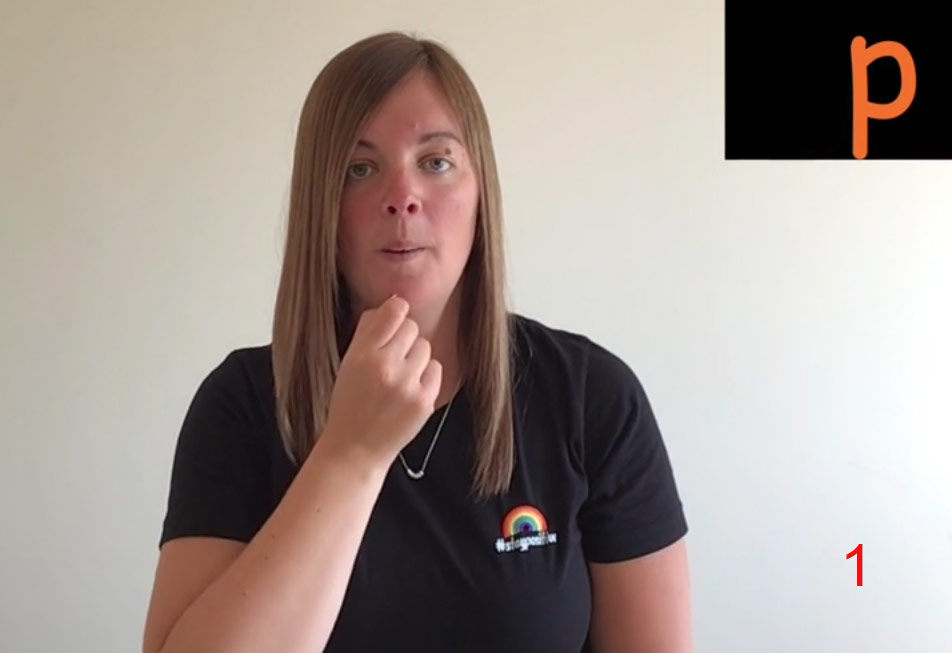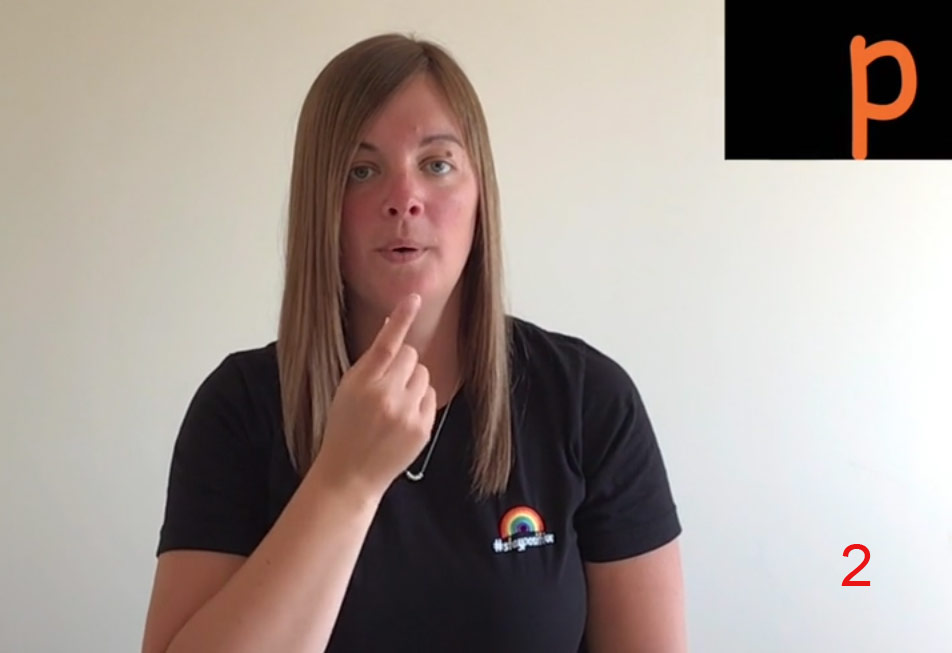 ‘p’ fingers part as lips open