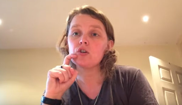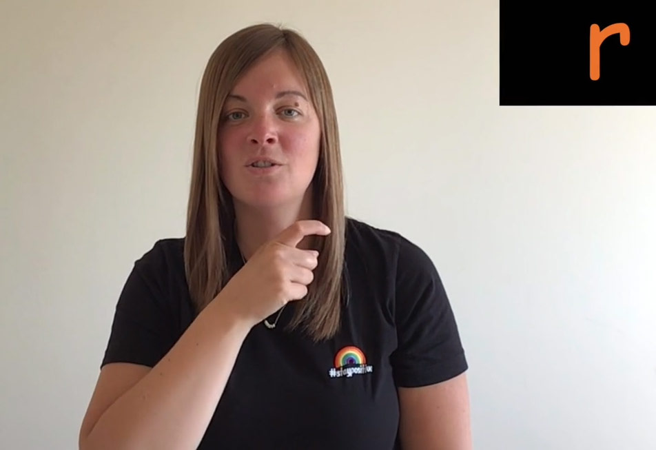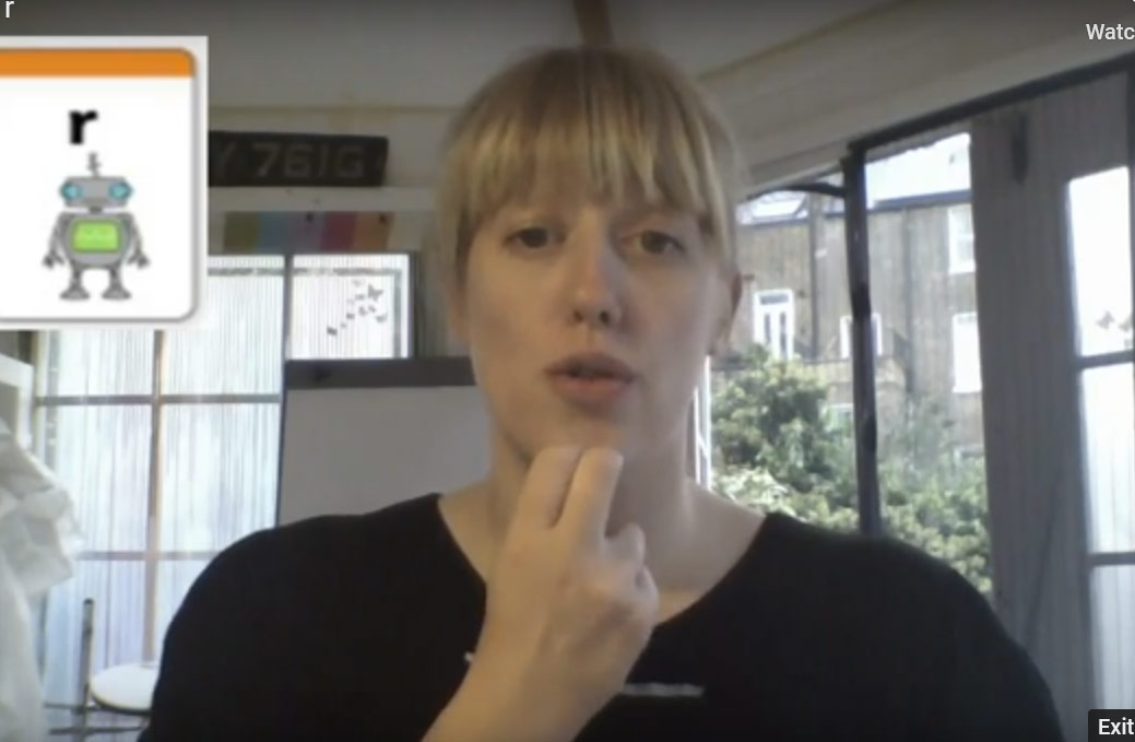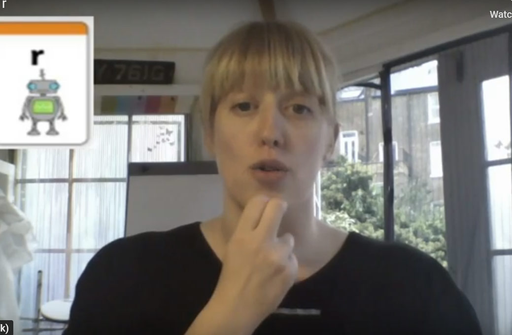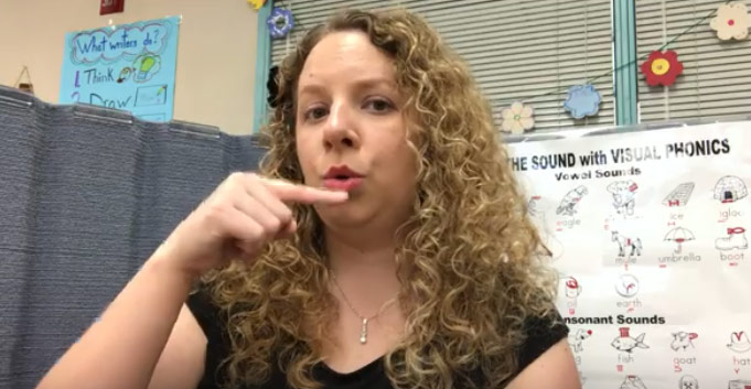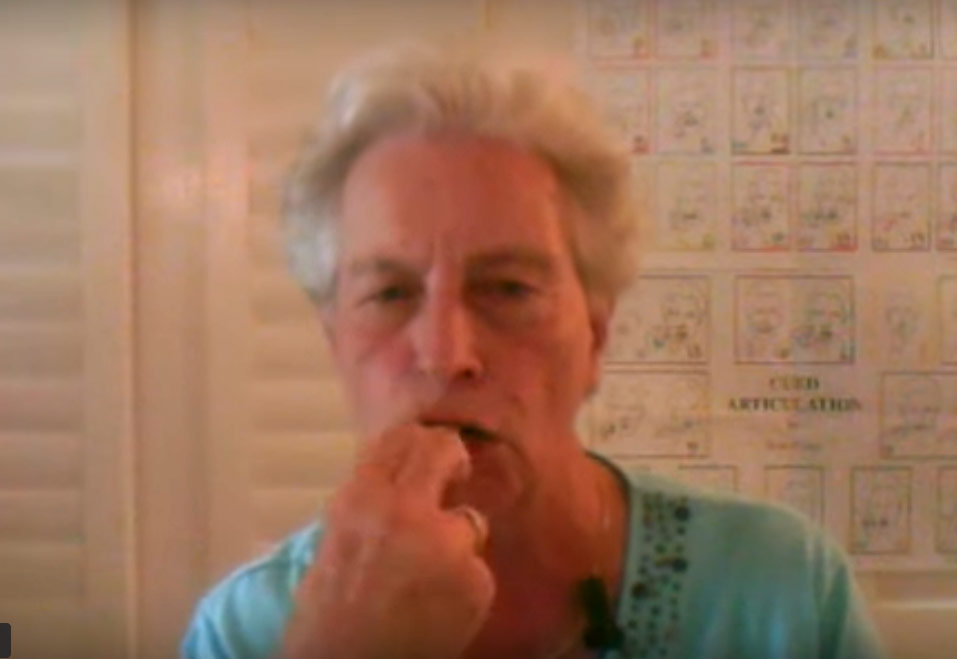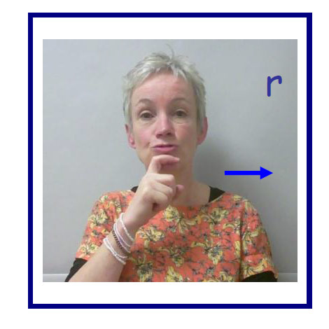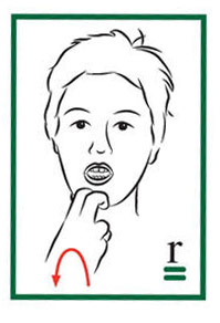 Draw the symbol in the air with your index finger, moving outward from your mouth.