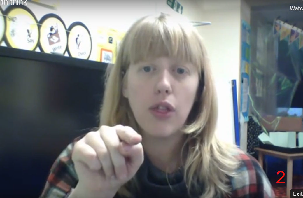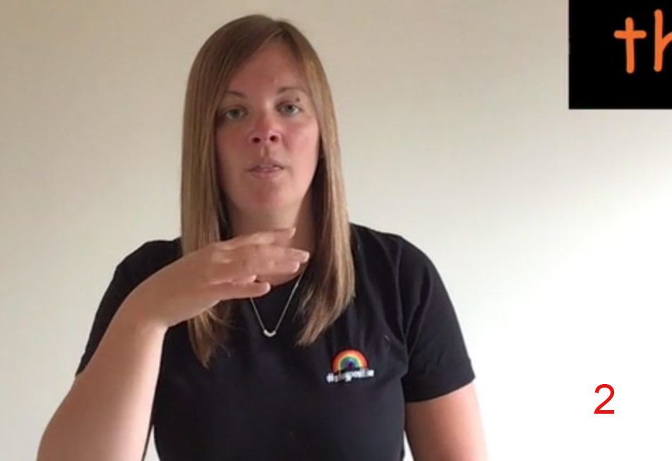 4 fingers spread near mouth